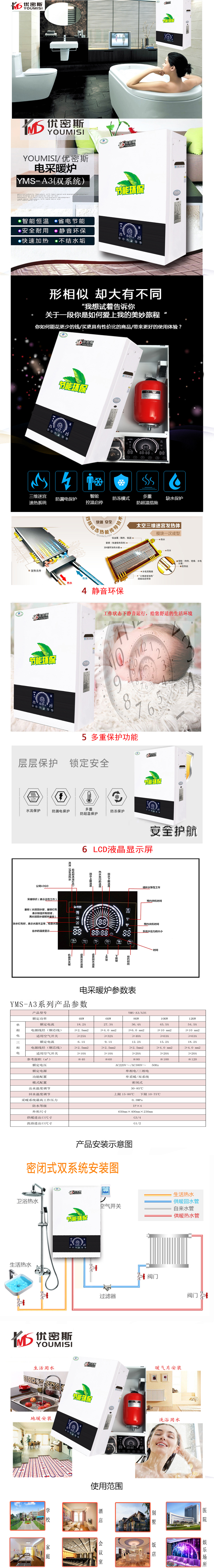 时尚系列YMS-A3S(双系统) 时尚系列(YMS-A3S) 外形尺寸:650400230mm 使用模式:密闭式 功率范围:4KW-12KW 适用面积:40m-120m